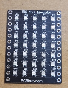 A breadboard friendly Bi-Color 5x7 display utilizing 0606 LEDs